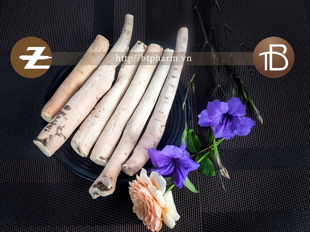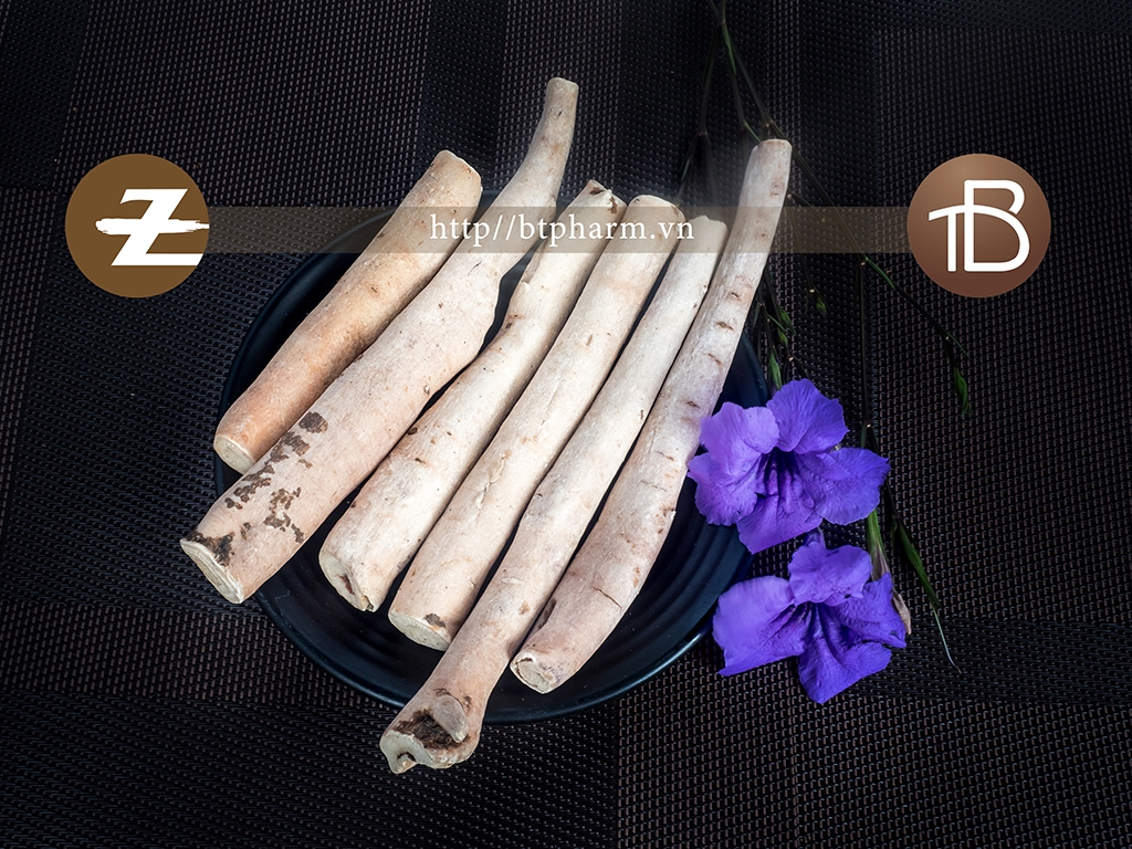 Rễ hình trụ tròn, thẳng hoặc đôi khi hơi uốn cong, hai đầu phẳng; đều nhau hoặc một đầu to hơn, dài 5 cm đến 18 cm, đường kính 1 cm đến 2,5 cm. Mặt ngoài hơi trắng hoặc hồng nhạt, đôi khi có màu nâu thẫm, nhẵn hoặc có nếp nhăn dọc và vết tích của rễ nhỏ. Chất rắn chắc, nặng, khó bẻ gãy. Mặt cắt phẳng màu trắng ngà hoặc hơi phớt hồng, vỏ hẹp, gỗ thành tia rõ đôi khi có khe nứt. Không mùi. Vị hơi đắng và chua