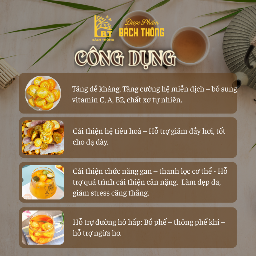 - Pha cùng nước sôi từ 90°C trở lên, mỗi 200ml nước tương ứng khoảng 10g kim quất.