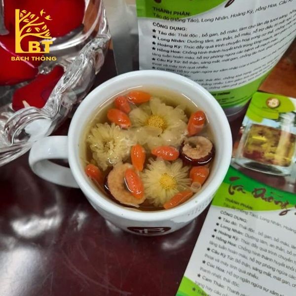 Trong tiết trời Đông, thưởng thức cốc Bách Thông Dưỡng Sinh Trà nóng hổi, thơm dịu ngọt, vị trà thanh mát với đầy đủ thành phần Câu kỷ tử, Cam thảo, Hồng hoa, Táo đỏ, Long nhãn, Hoàng kỳ, Trần bì, Cúc hoa, Kim ngân hoa như có cảm giác ôm trọn báu vật của thiên nhiên trong lòng bàn tay.